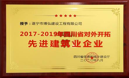 遂寧市博弘建設(shè)工程有限公司(以下簡(jiǎn)稱(chēng)“博弘建設(shè)”)經(jīng)過(guò)綜合評(píng)審,獲得“2017-2019年四川省對(duì)外開(kāi)拓先進(jìn)建筑業(yè)企業(yè)”殊榮。